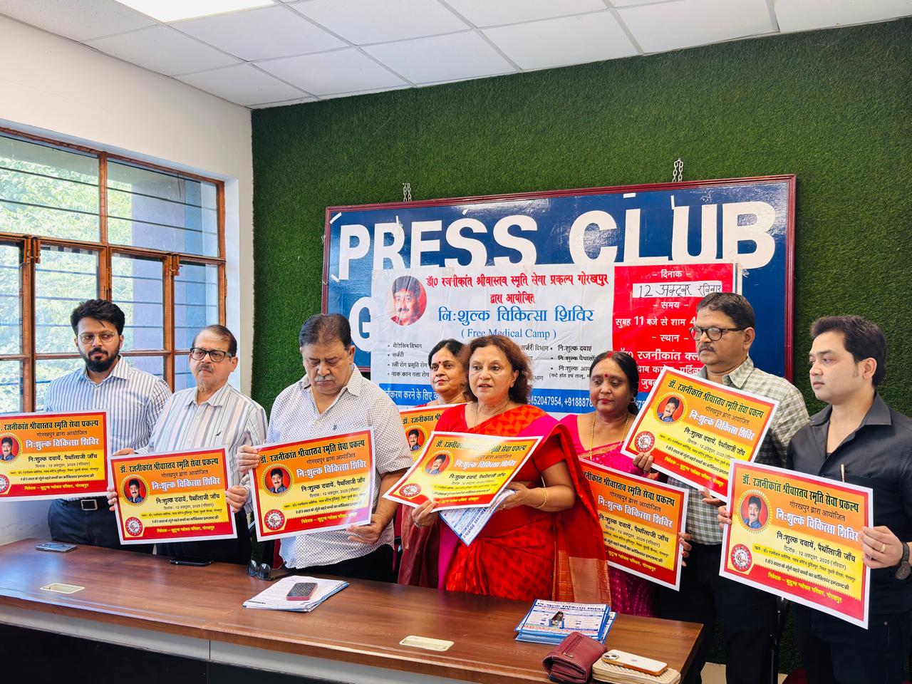 Gorakhpur Free Medical Camp 2025 गोरखपुर में 12 अक्टूबर 2025 को डॉ. रजनीकांत श्रीवास्तव स्मृति सेवा प्रकल्प के तहत अब तक का सबसे बड़ा निःशुल्क चिकित्सा शिविर लगेगा। इसमें बच्चों, महिलाओं और बुजुर्गों को मुफ्त इलाज, जांच, दवाइयाँ और ऑपरेशन की सुविधा मिलेगी। प्रदेश के साथ साथ अन्य राज्यों के विशेषज्ञ डॉक्टर इस शिविर में सेवाएँ देंगे।